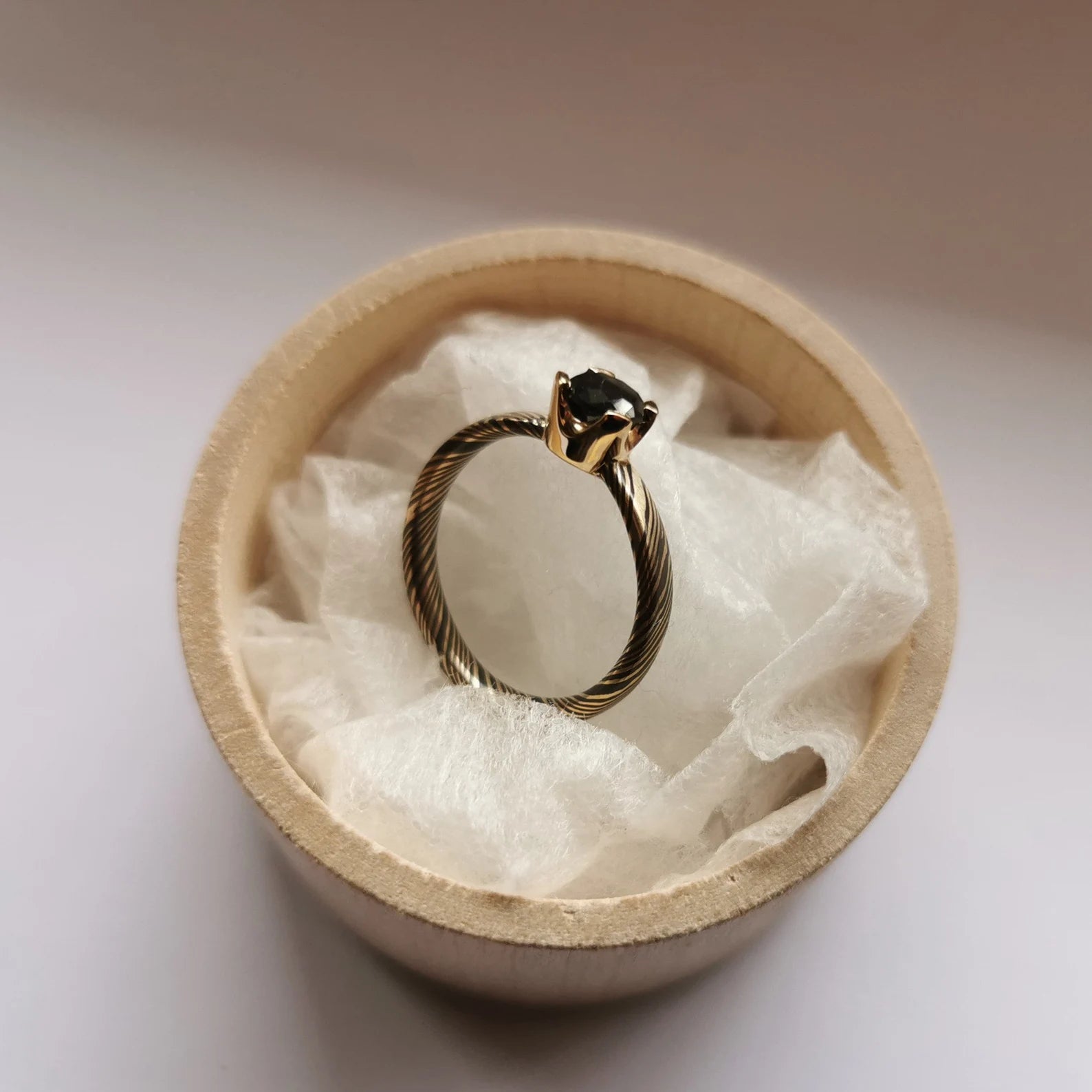 Unique 14k Gold Mokume-Gane Engagement Ring.